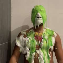 LeRex got a custard-filled balloon busted over his head by MessyMegan